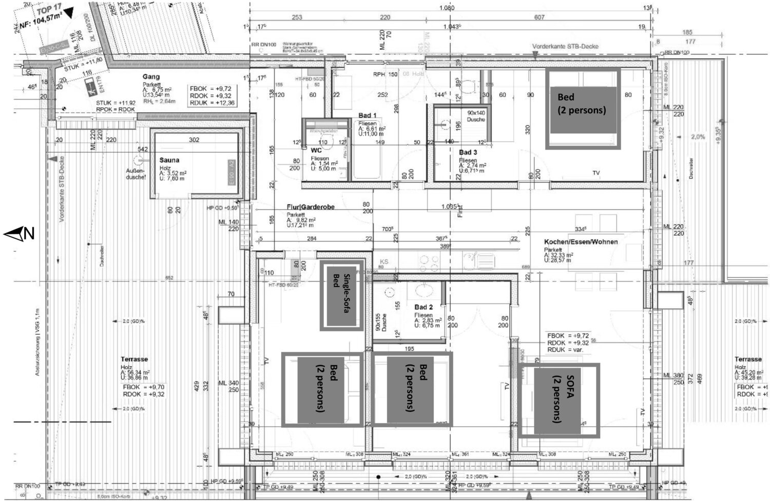 From 50 to 130 m², with 1–3 bedrooms for 2 to 10 people – from cozy basics to exclusive lofts with private sauna and XXL terrace.