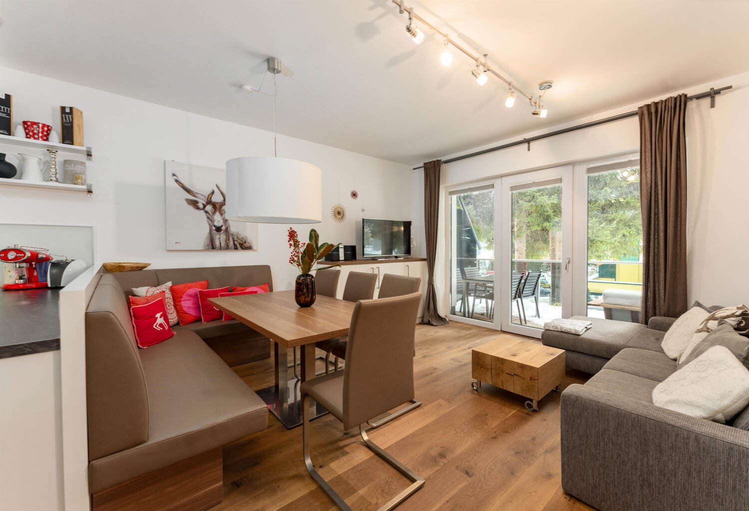Das Appartement Traumblick liegt ruhig und sonnig in Rohrmoos – mit direktem Zugang zur Skipiste und herrlichem Blick auf Schladming und den Dachstein. Der großzügige Balkon erstreckt sich über die gesamte Wohnungsbreite und ist im Sommer möbliert – ideal zum Abschalten.