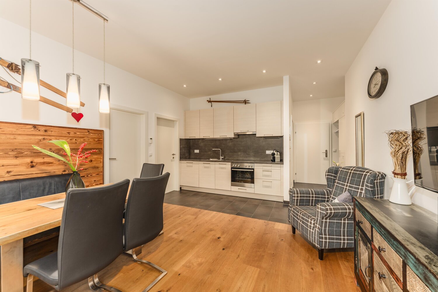 Whether skiing in winter or hiking along the Enns River in summer, Appartement Gabbie is the perfect starting point for all your adventures. Supermarkets, an indoor pool, and numerous leisure activities are close by, so you won’t miss a thing. A ski storage facility directly opposite the Planai valley station and a reserved carport parking space add extra convenience.